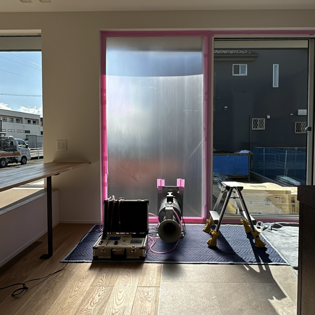 C値0.17の超高性能なお家。大工さんによる丁寧な施工が数字にも表れていますね👏👏(実際の気密検査の様子です!)