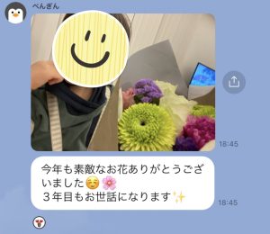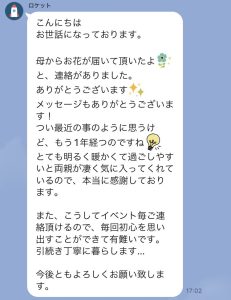 そんな中お花が届いたオーナー様から嬉しいメッセージや写真が届き、