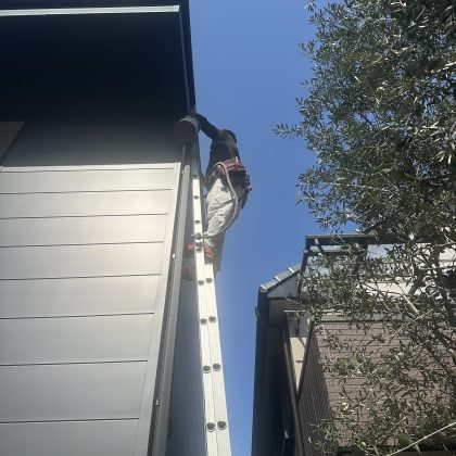 そんな中でも、梯子を支えている私に「工具や俺の汗とか落ちたら危ないから離れてな!(笑)」と声をかけてくれる大橋さん。。