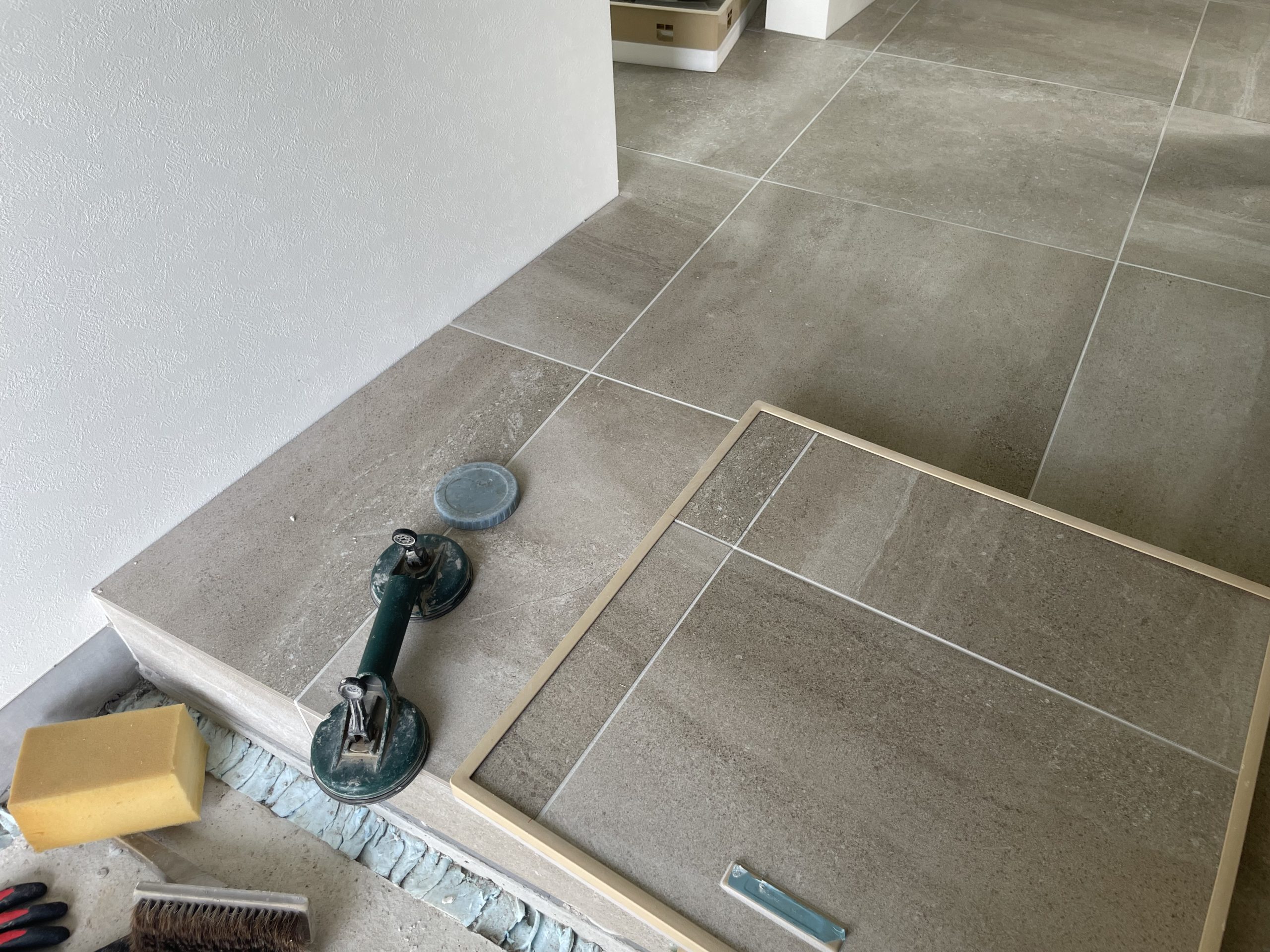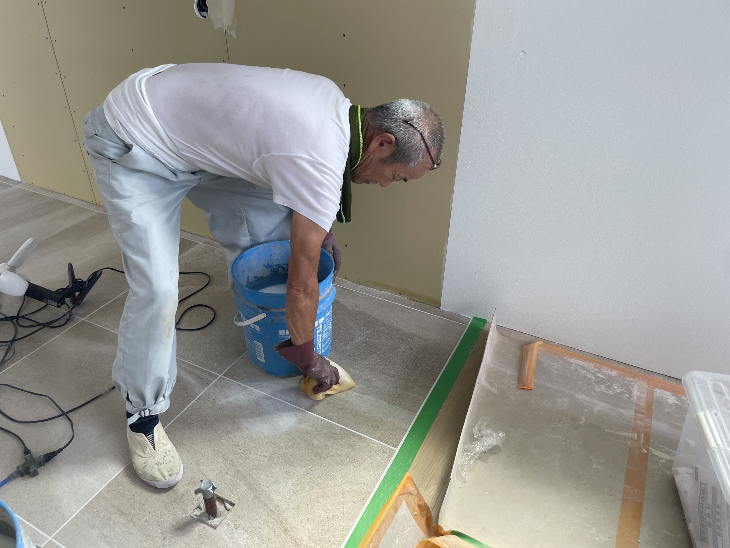 そんな中 作業している職人さんから、タイル貼りの現場で どこを基準に貼りだすかとか、仕上げ材が張り分けする時、