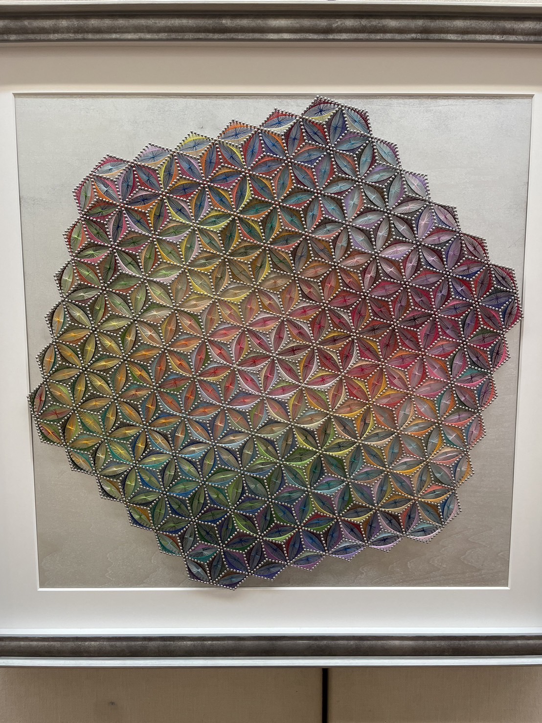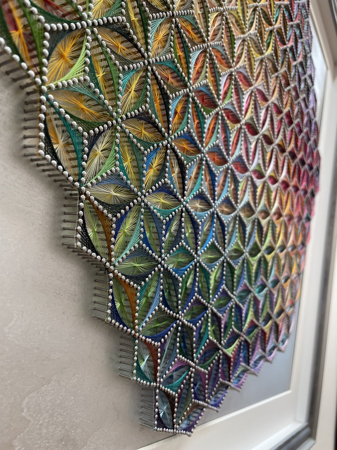 全体を見渡した時は 絵では表現できない、クギと糸だけで 幾何学模様を作りだし、