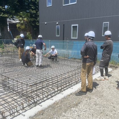 私は特に工事中の現場での職人さん作業の品質・施工方法などを見たくて、完成建物を見に行くグループではなくて、第三者検査機関の方と共に、基礎配筋・型枠検査~構造、屋根・外壁防水検査~完成竣工検査の3工程時の各検査の立ち合いに参加させて頂きました。