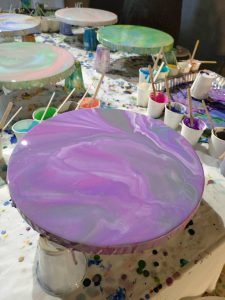 ポーリングアートとは、絵の具をキャンバスに流し込むことで、予想外の模様や色の展開を楽しむ抽象絵画の一種であり、
