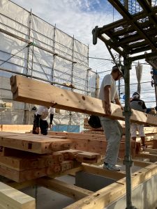 写真に写っている梁も相当な重量ですが、ベテラン大工ともなると