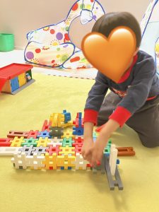 また、『パパのお家作る!』と言って大きなお家を作っていく際に『ここはトイレ』と説明しながら作業してくれてブロックをくっつけるときに長いブロックをトンカチに見立てトントン🔨