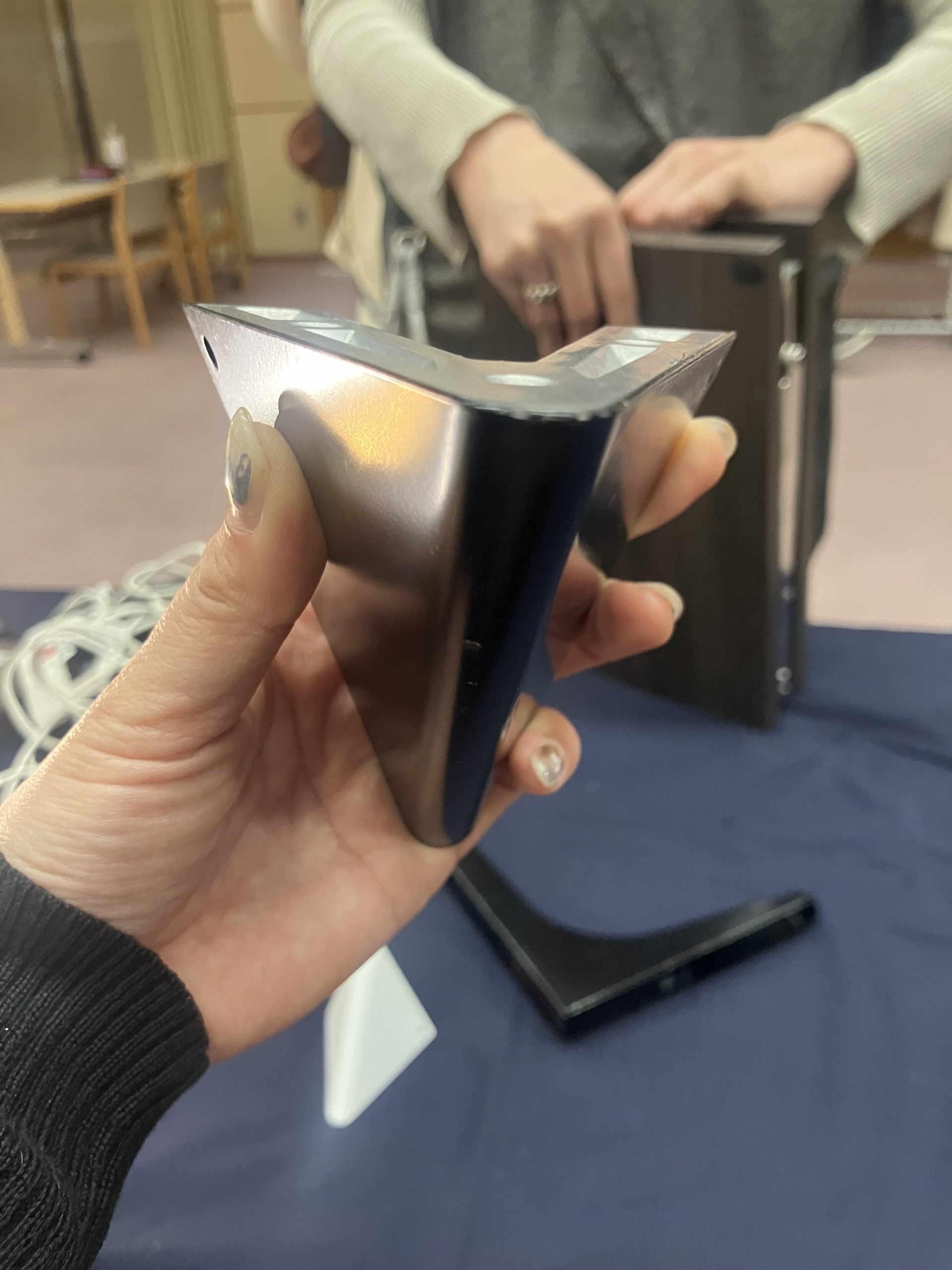 ↑これは新製品の棚受け金物。三角錐って他でなかなか見ないですよね~!