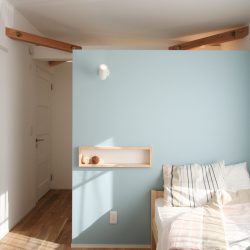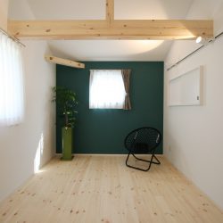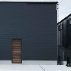 外観は、黒色のガルバリウムにレッドシダーが映えるオトナな面持ち。中に入ると、オークの無垢フローリングが全体を落ち着いた雰囲気に演出しながら、所々に施したアクセントのクロスがコーディネイトを引き締めてくれています。