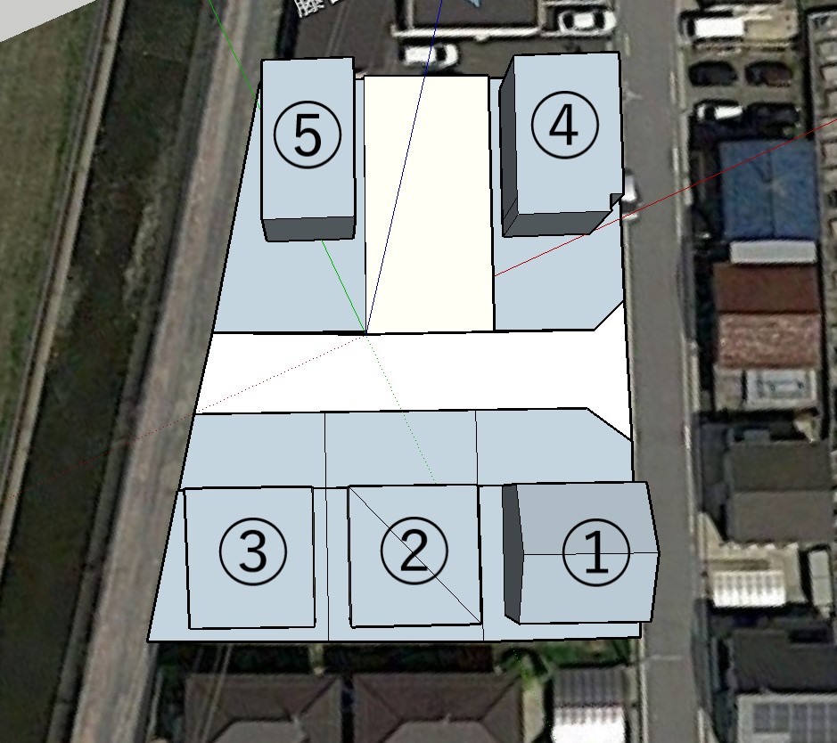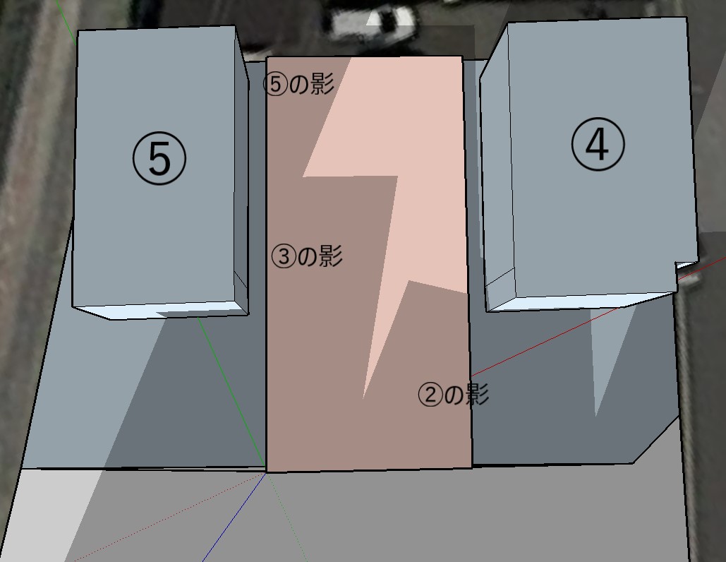 周辺建物が、検討土地に対して、どのように影を落とすのか? どこに、何時間くらい日当たりが確保できるのかをチェックします。