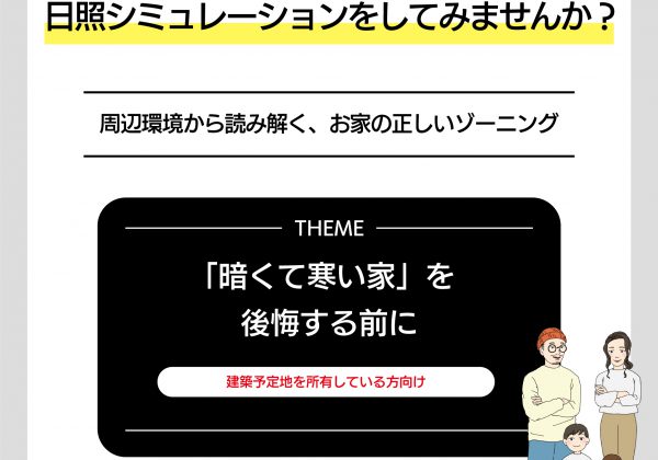そんな一大決心を伴う「土地購入」や「プランニング」において、私たちは、家づくりのプロとして「日照シミュレーション」の実施をおススメしています。