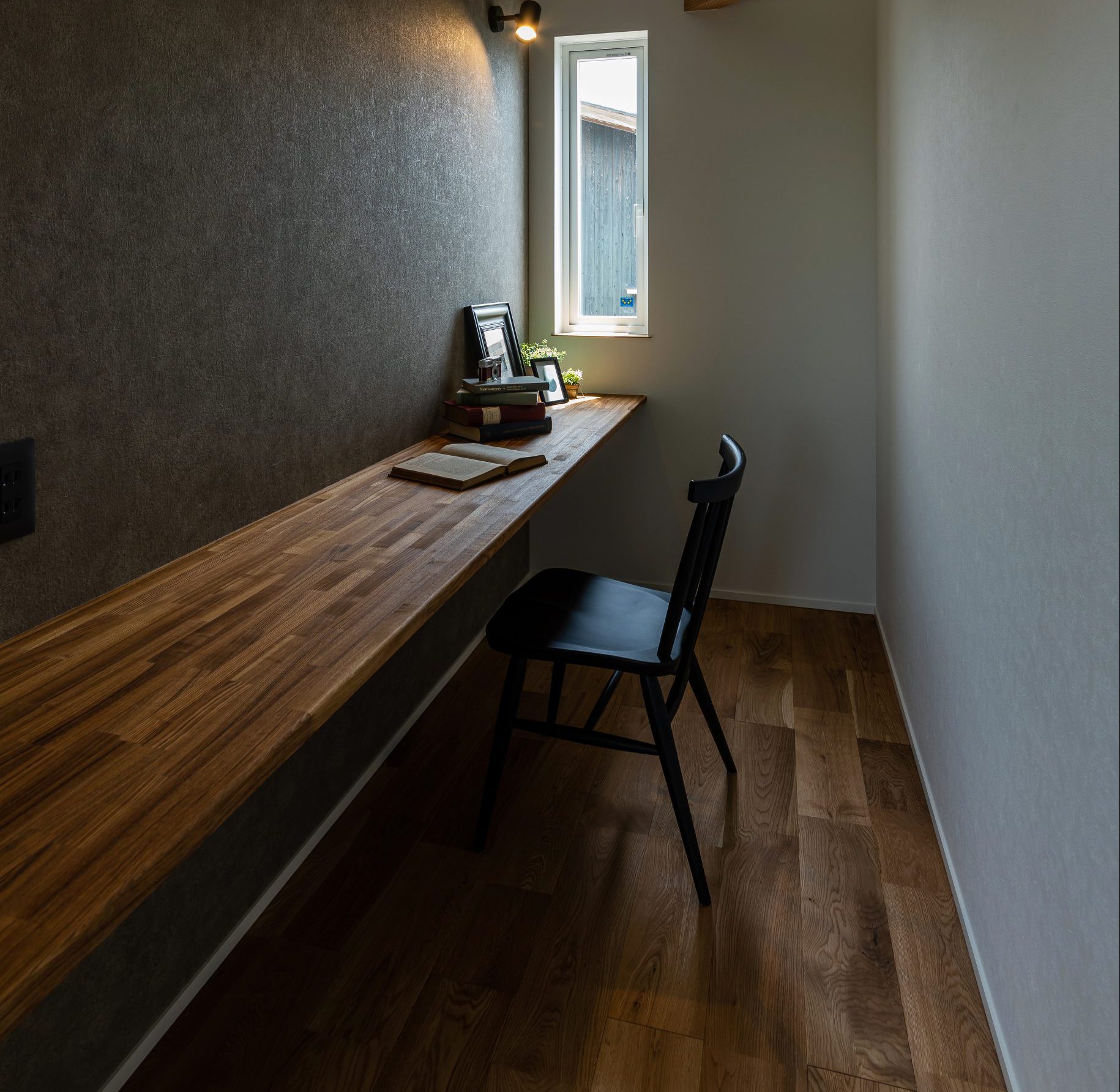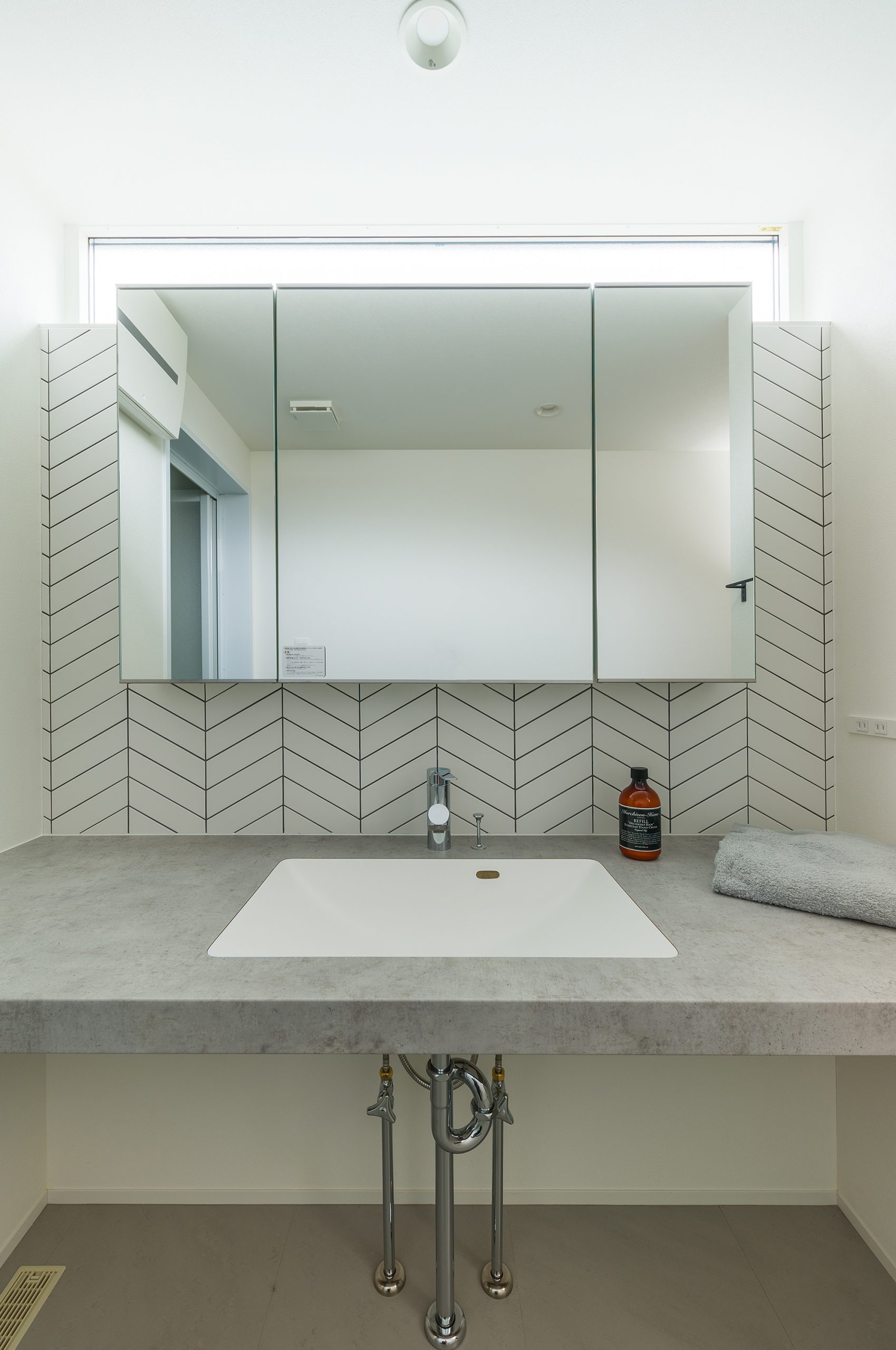 インテリアは、オークの幅広(幅190㎜)のフローリングと、人気のグラフテクトのキッチン、お施主様に支給していただいたタイルなど、オトナの雰囲気が漂う、品のいい空間に仕上がっています。