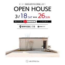 今回のOPEN HOUSEは、人気の平屋のお家です。デザインのことはもちろん、間取りや性能など、新しいヒントが満載です!これからお家づくりをされる方には参考になることばかり。