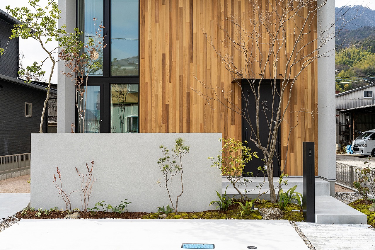 岐阜県瑞穂市の住宅地に完成したのは、大きな連窓とレッドシダーの板張りが目を惹くデザイン住宅。