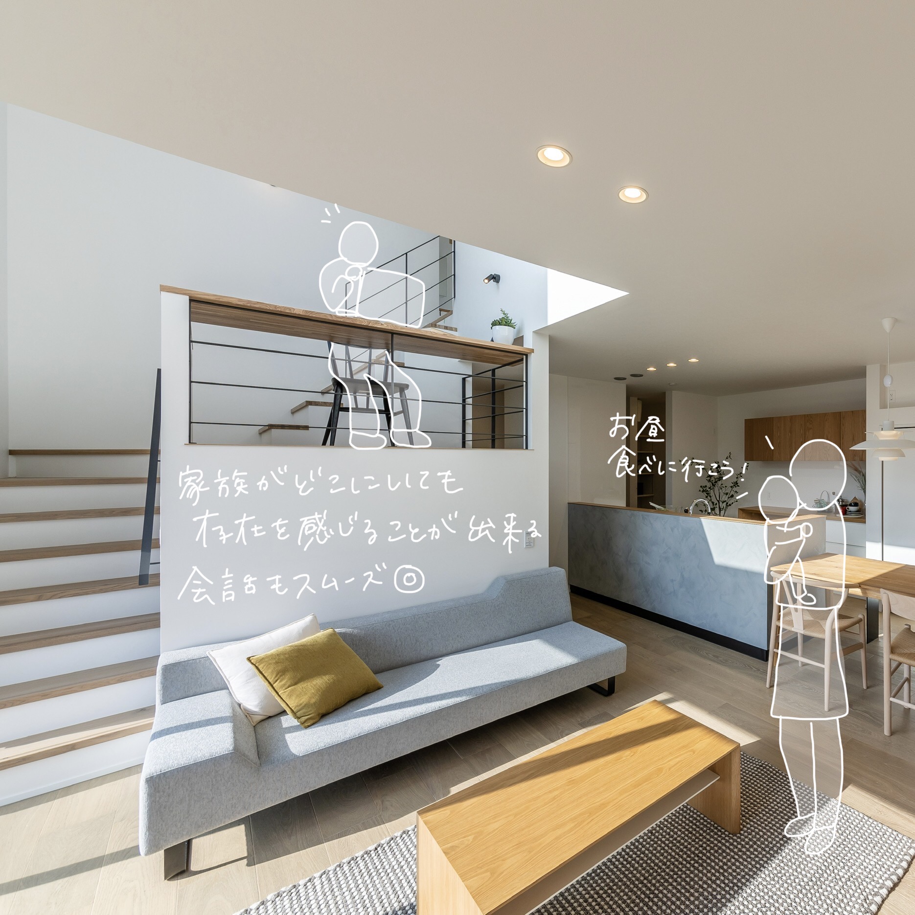 □ 家族の気配を感じながら、程よい距離感を保ち仕事ができるスキップフロア!