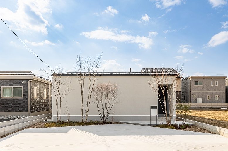 岐阜市旦島の住宅地に完成したのは、飽きのこないシンプルなデザインが上品で美しい平屋。