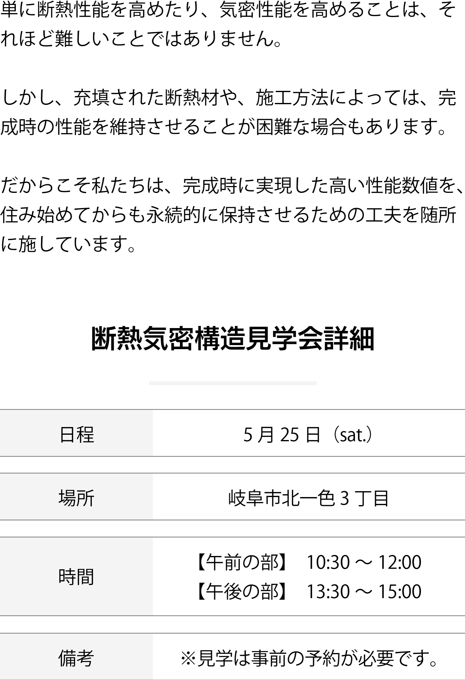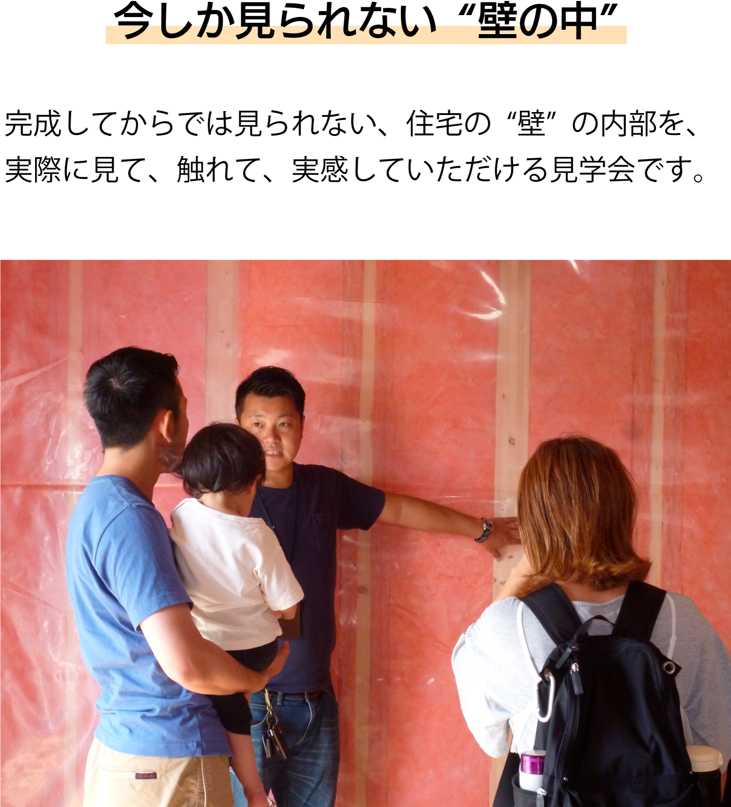 見学会の目的は、私たちのお家づくりを体感してもらうことです。お客様への強引な売り込みや、その後の訪問など、しつこい営業行為は一切ありませんので、ご安心ください。