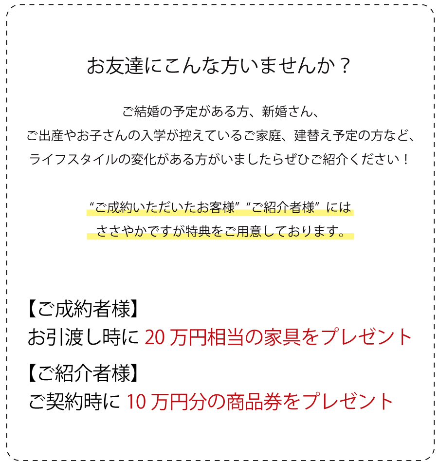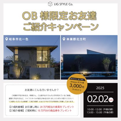 この度、昨年完成した2棟のモデルハウスにて、ご家族・お友達ご紹介キャンペーンを開催します。