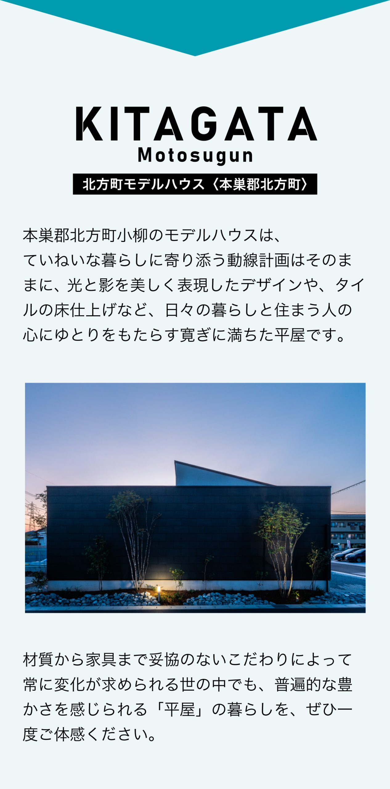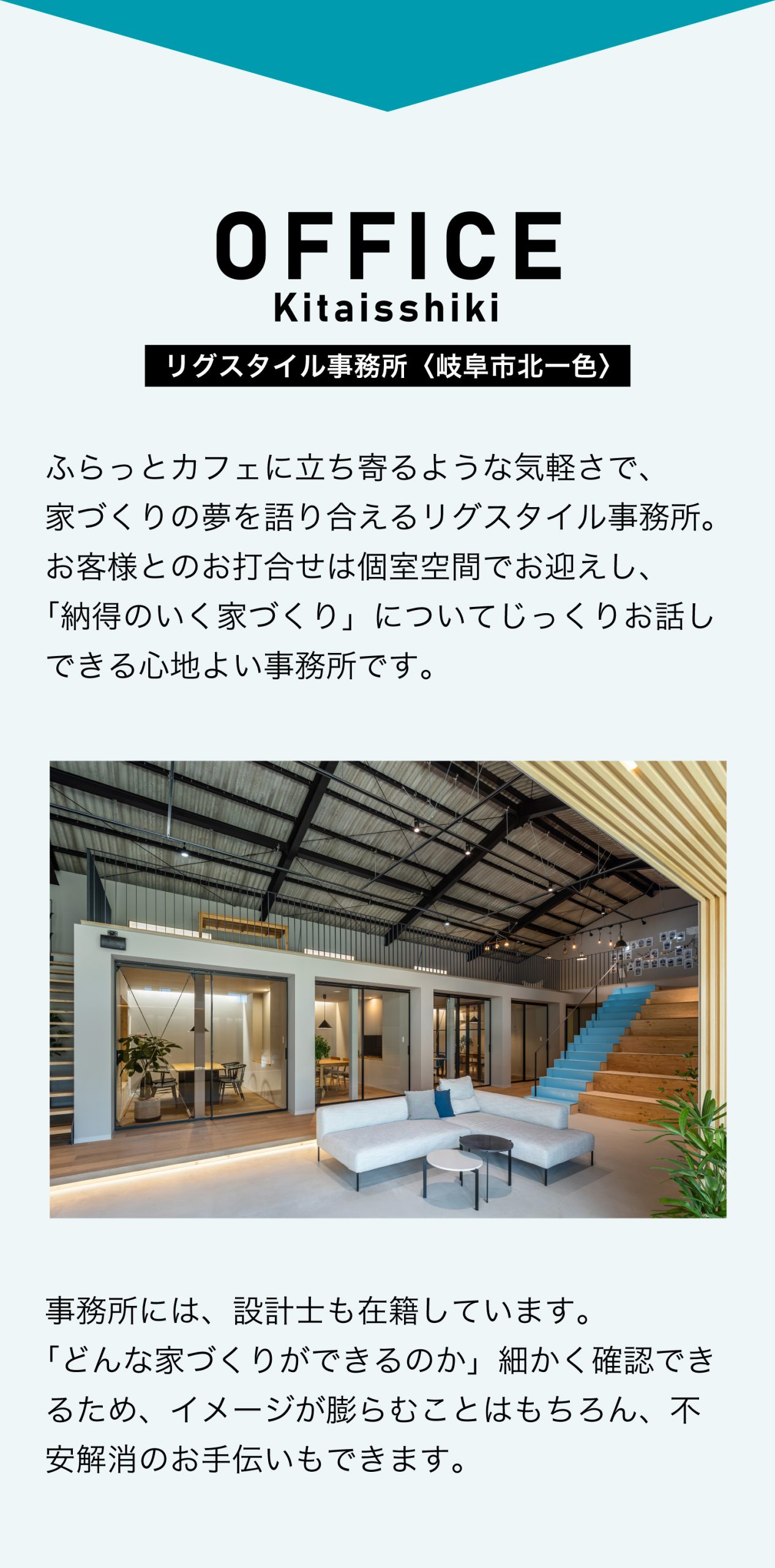 平屋モデルハウス(岐阜県本巣郡北方町小柳) 当社事務所(岐阜県岐阜市北一色4丁目3-5) |