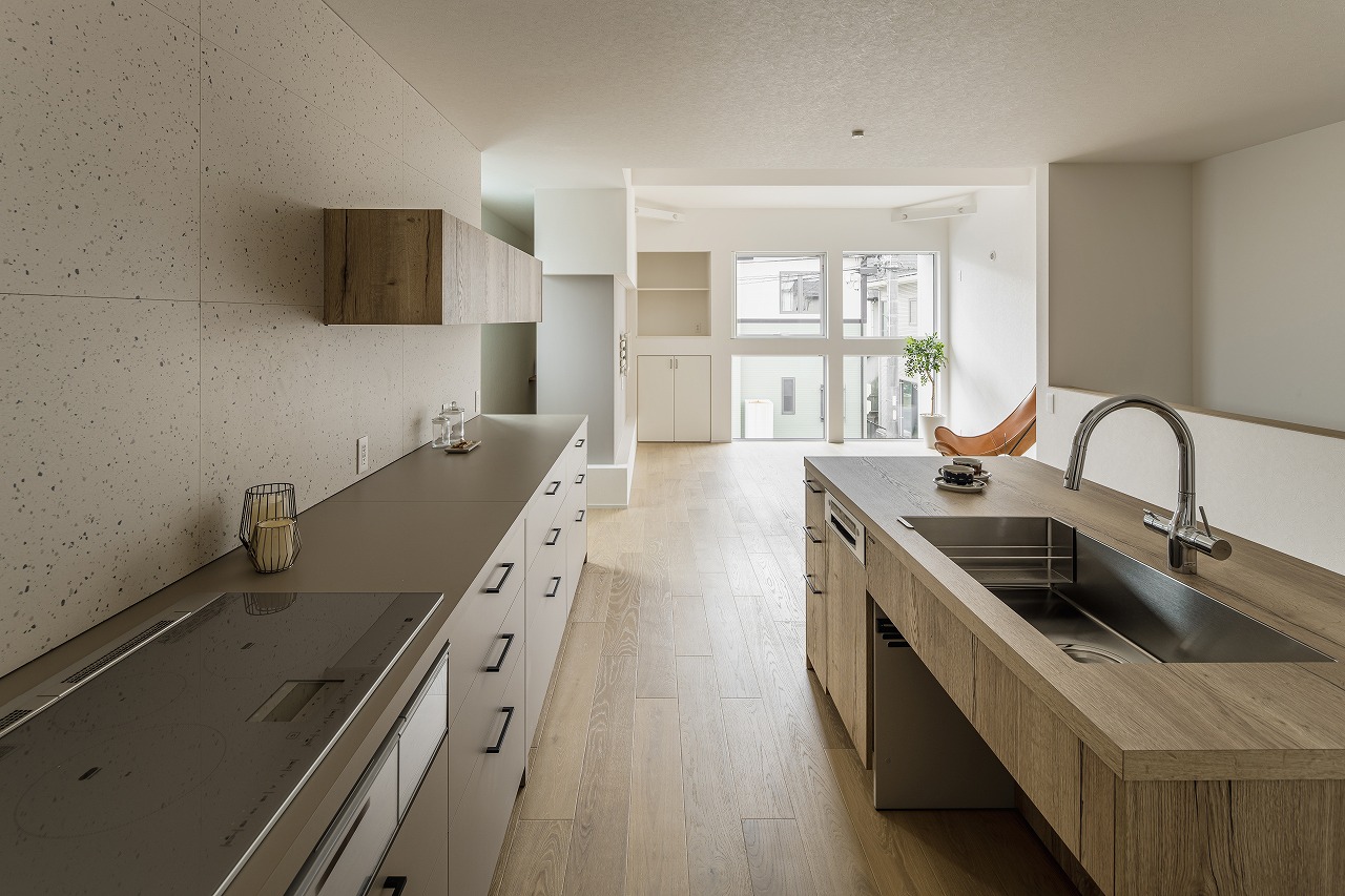 玄関からキッチン、洗面、WICまで、日々の小さな動作ひとつひとつがスムーズに流れるよう計画され、家事も、子どもとの時間も、心地よく過ごせる住まいになっています。