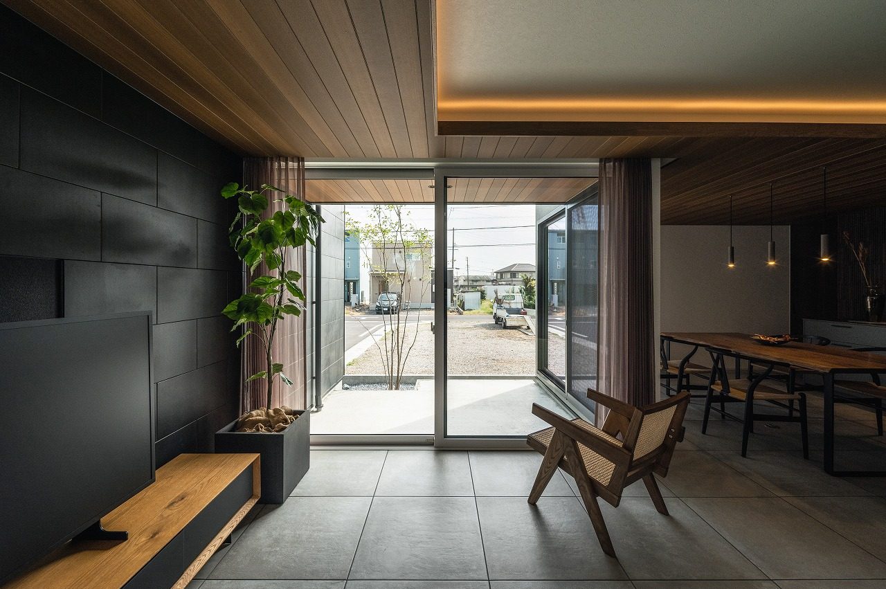 2階に配置されたLDK。朝は、南東角のバルコニーから心地よい風や柔らかな光が差し込みます。夜は、間接照明に包まれながら1日の疲れをそっと手放せる、穏やかな時間が広がります。