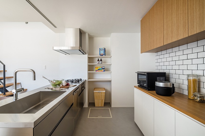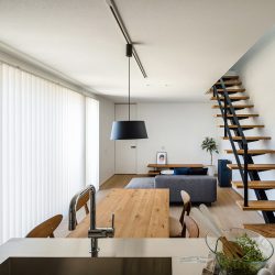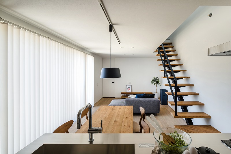 ファサードは生活感のないシンプルなデザイン。住居部分も、シンプルな中にオーナー様のセンスが光る素敵な空間に仕上がりました。