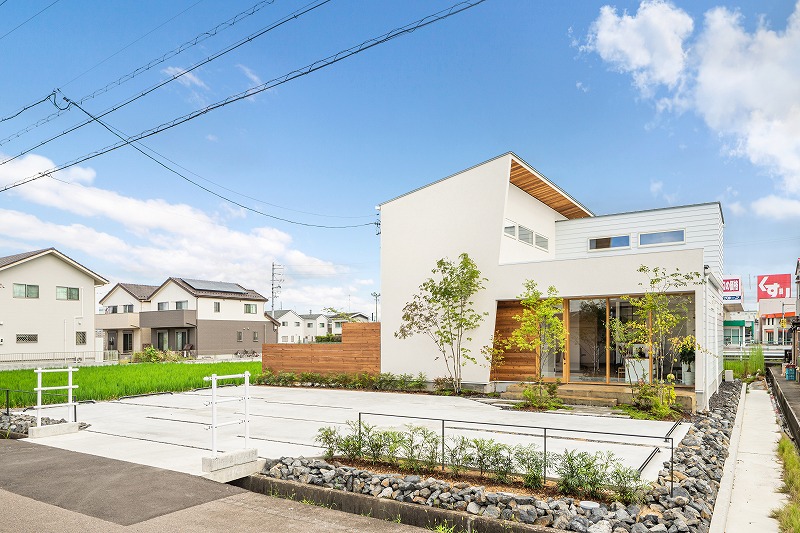岐阜市中鶉にある美容室BOLSO hair cubic。美容室オーナーの住居も兼ねた建物として建築をさせていただきました。