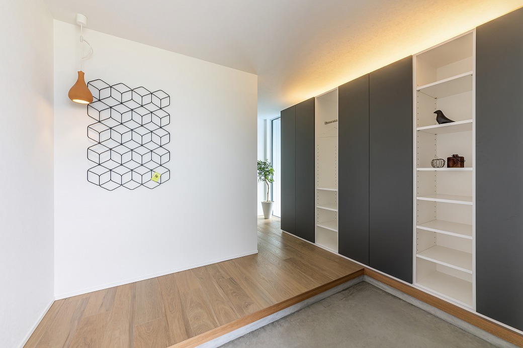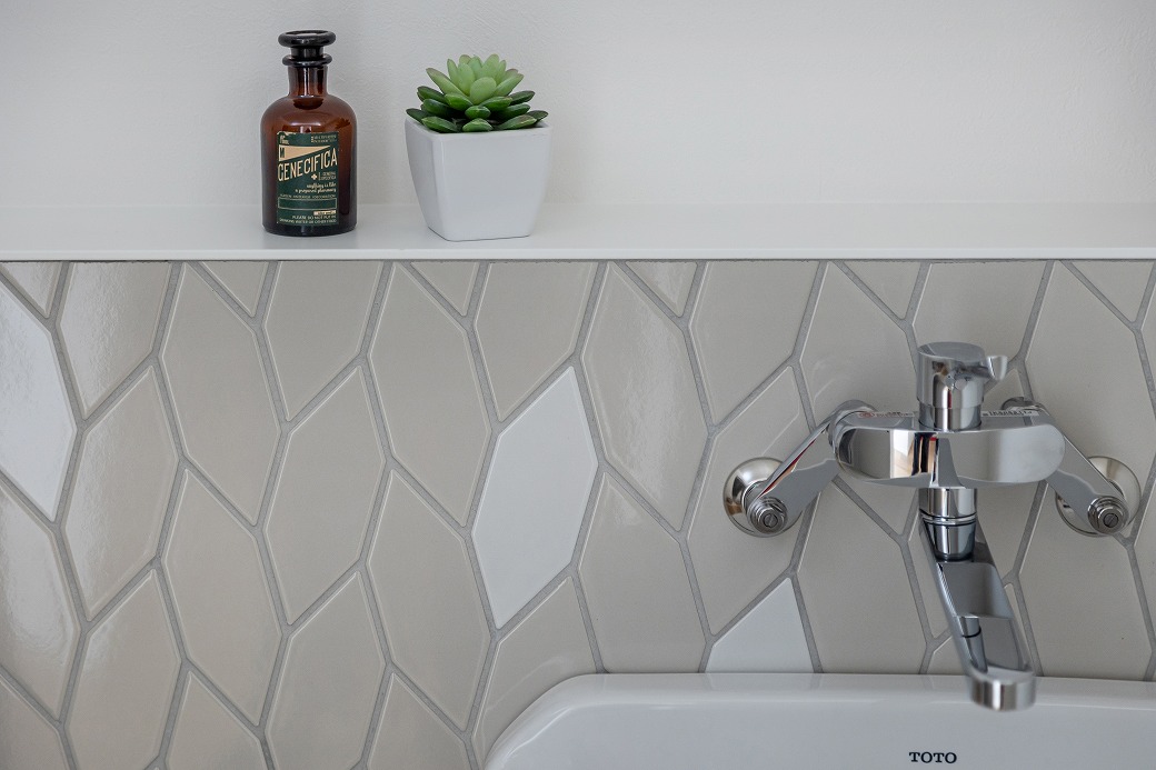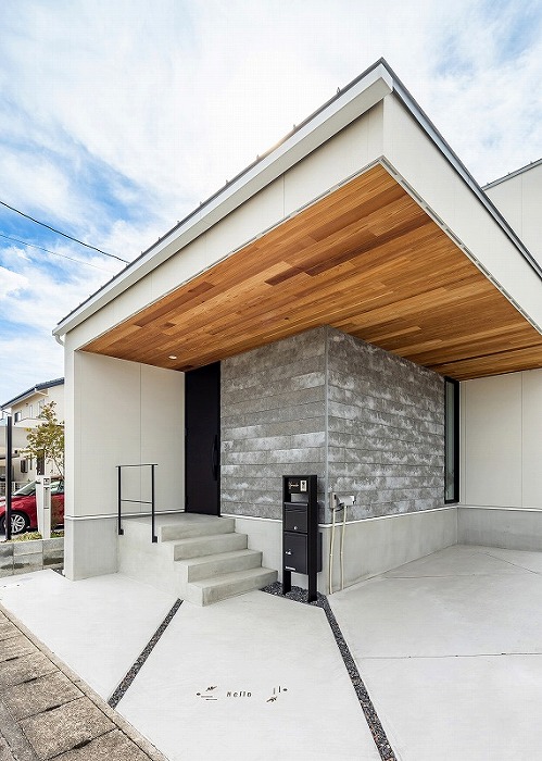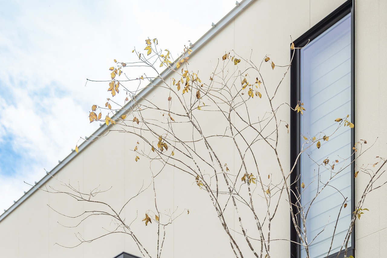 岐阜市中鶉の住宅地に完成したのは、グレイッシュな白を基調としたスタイリッシュなお家。