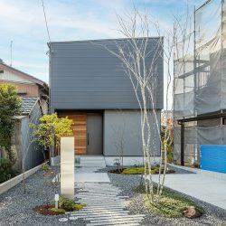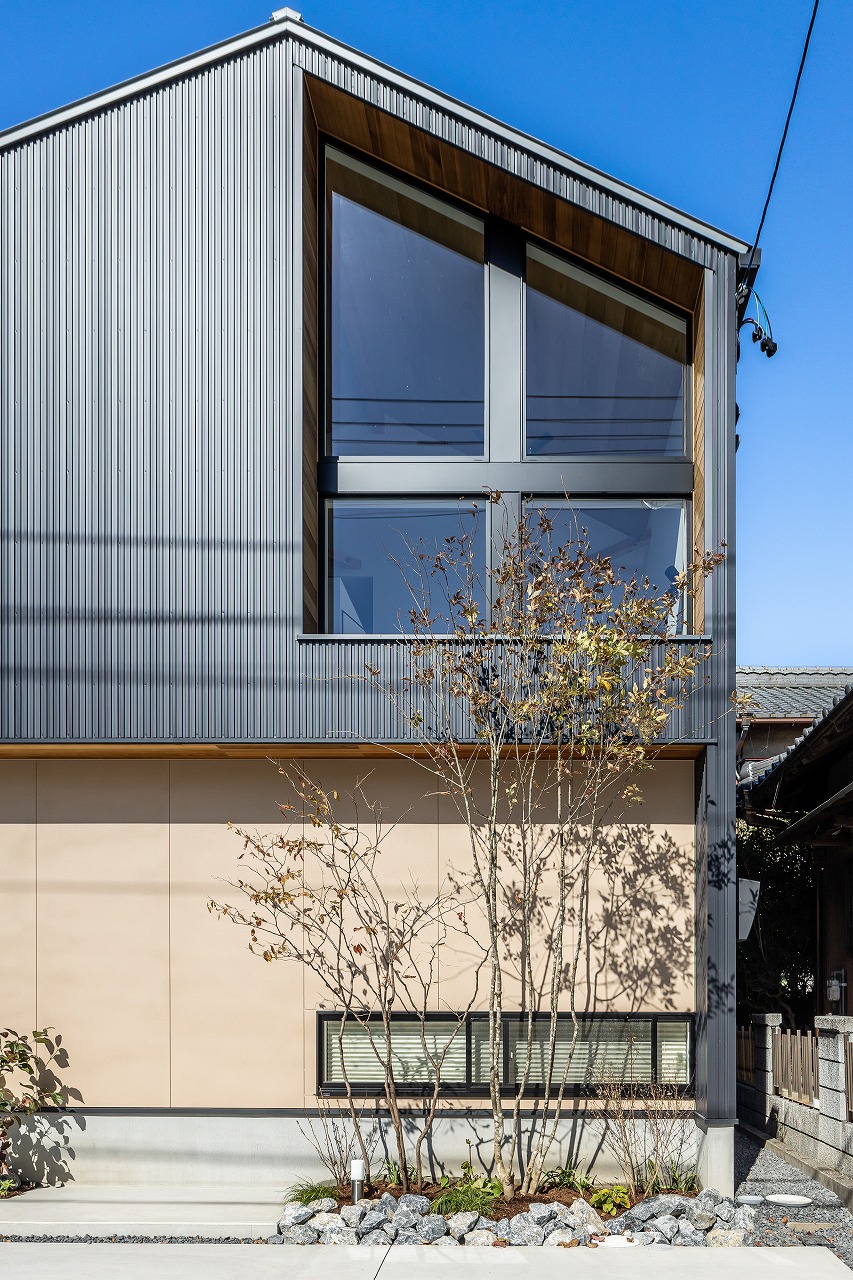 岐阜市長良の住宅地に完成したのは、大きな連窓が目を惹く三角屋根のお家。