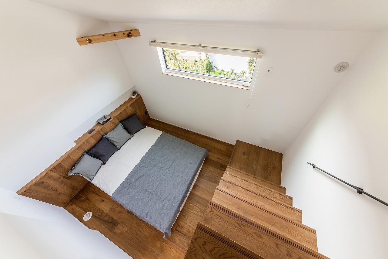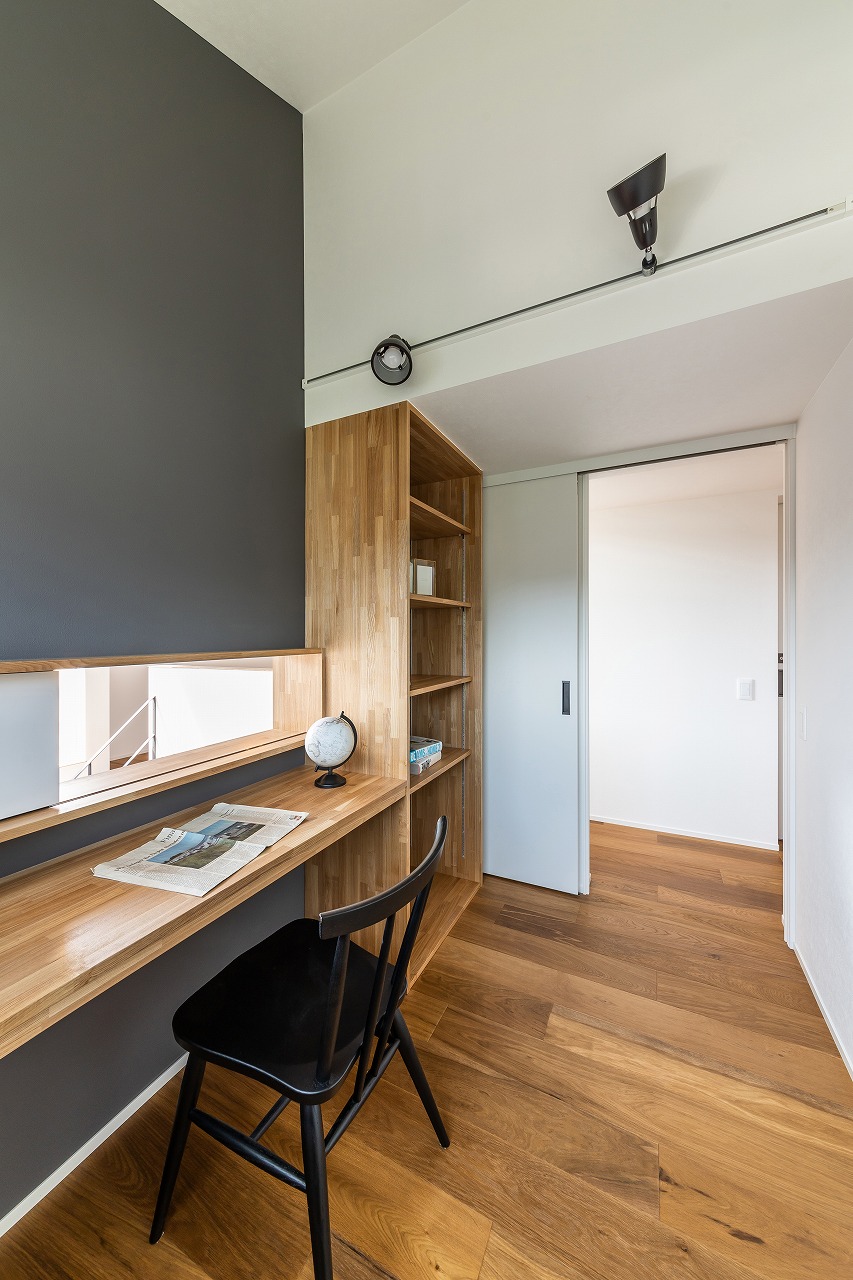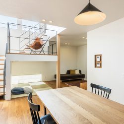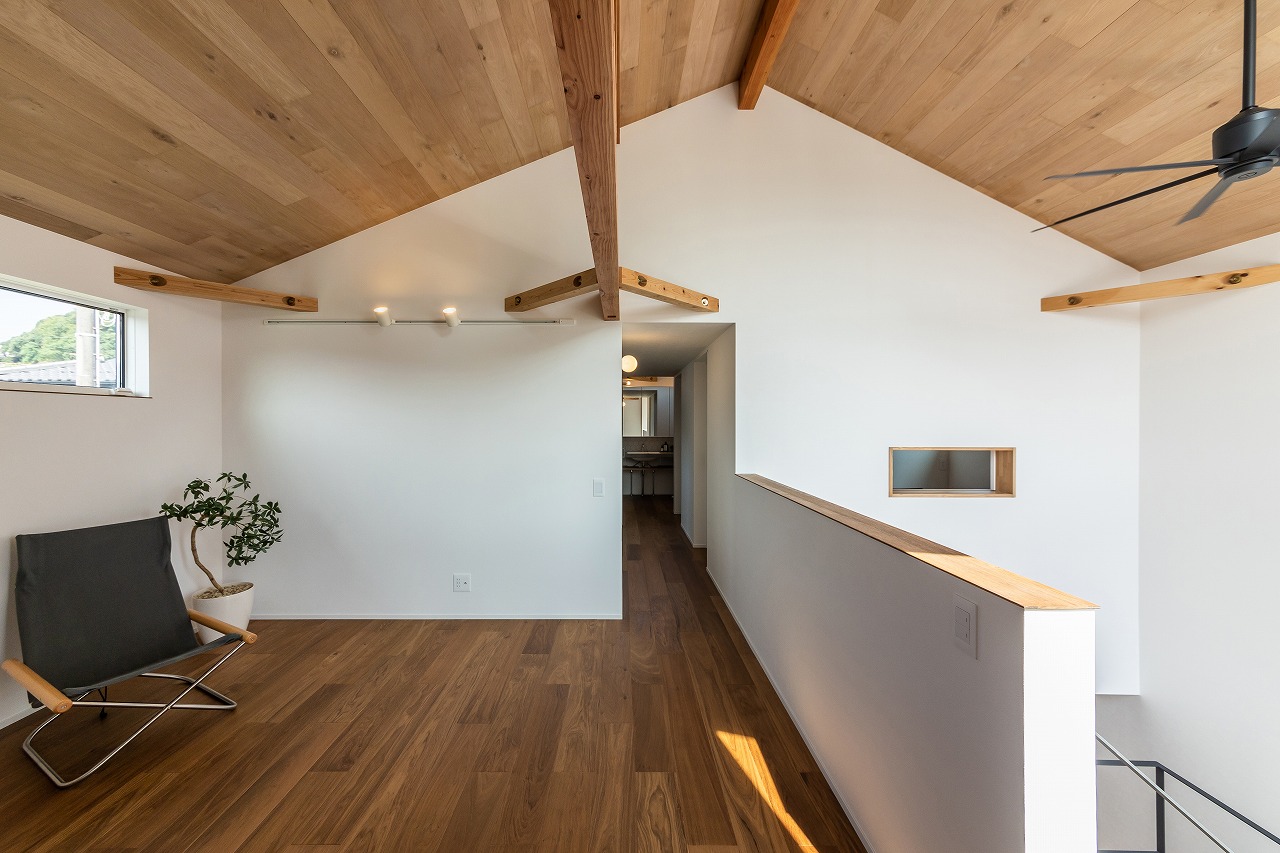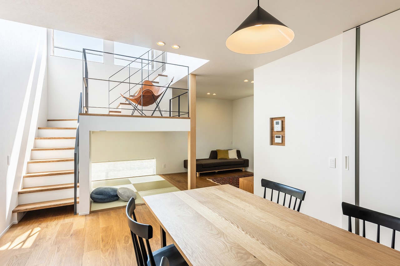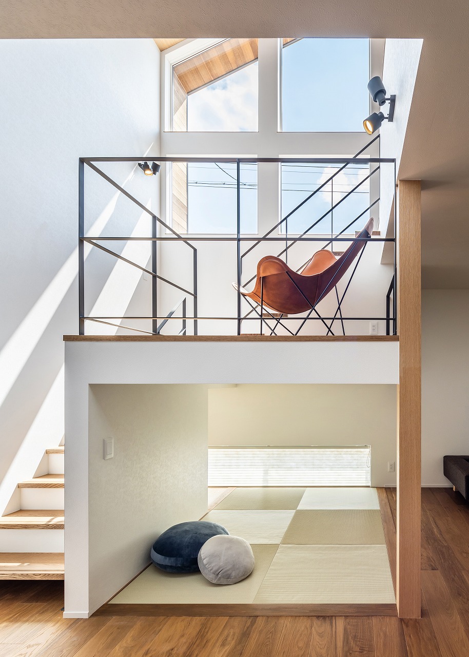 空間をうまく活用しながら随所に居心地を求め、床面積31坪ながら、畳コーナー、スキップフロア、フリースペース、書斎、ロフトなど、遊びゴコロ溢れる間取りを実現させました。