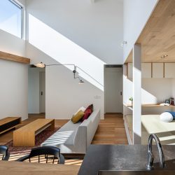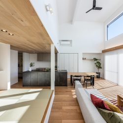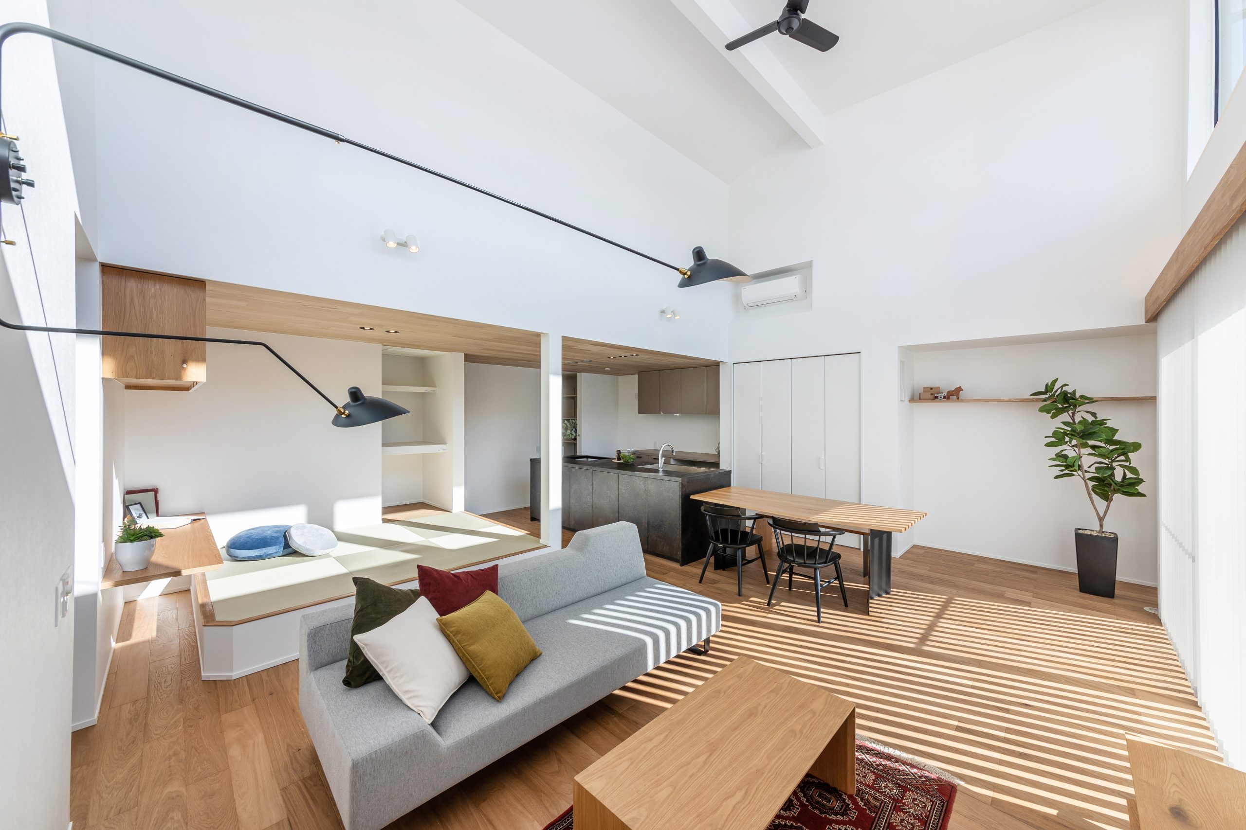 室内は、天井高と、窓から降り注ぐ太陽の光がLDKを優しく包み込み、真冬でも暖房が不要なほど快適な空間を実現しています。