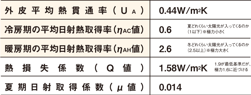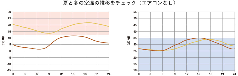 「冬は朝6時で15℃以上、夏は最高で35℃以下(ともにエアコンなしの場合)」という明確な室温を目標に据え、パッシブデザインハウスを設計します。