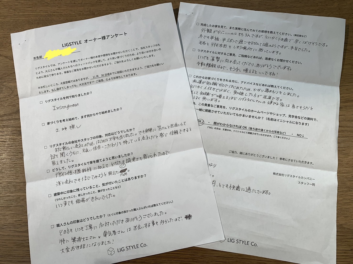 完成したお家を見て、また実際に住んでみての感想を教えてください