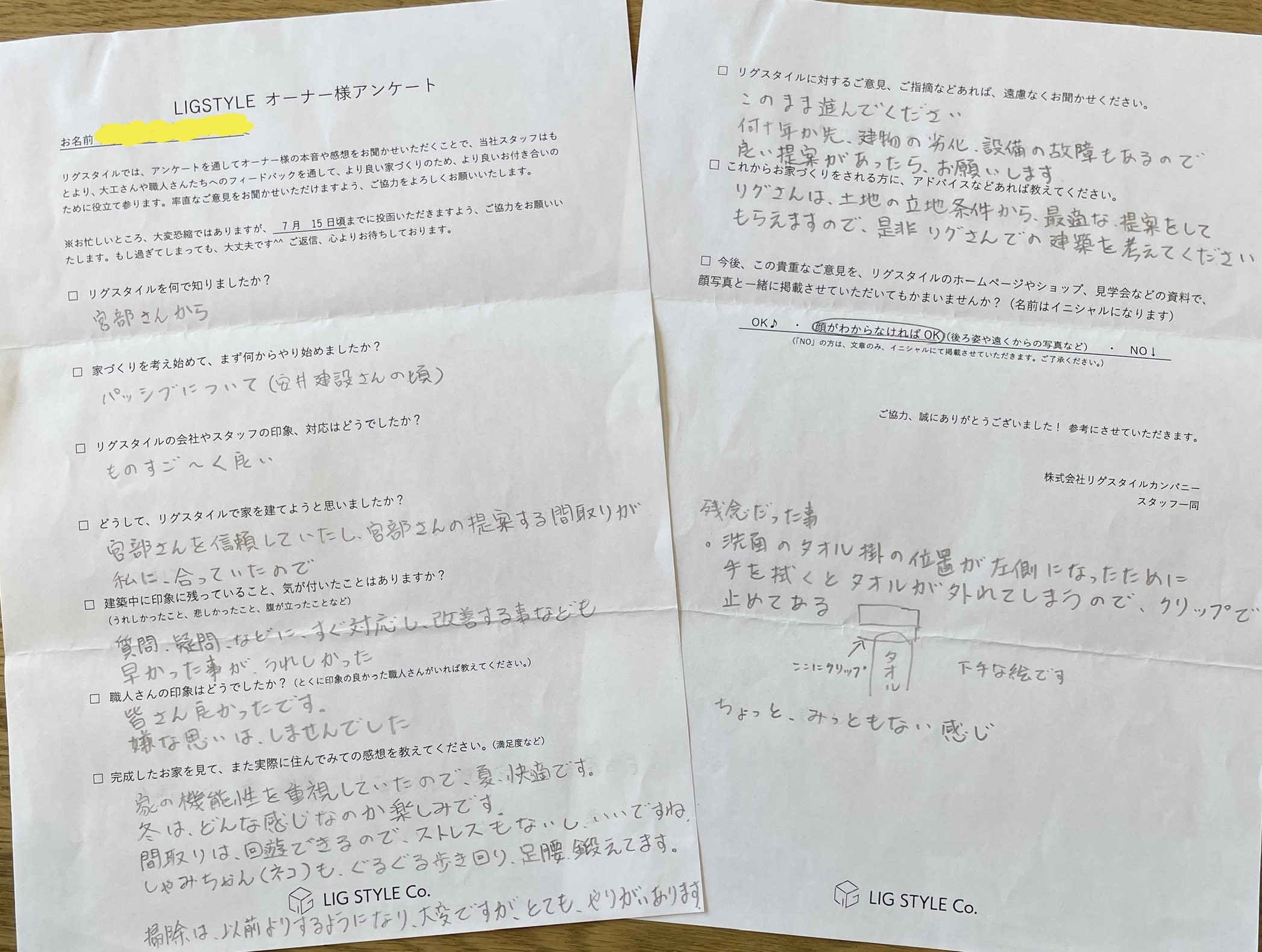 完成したお家を見て、また実際に住んでみての感想を教えてください