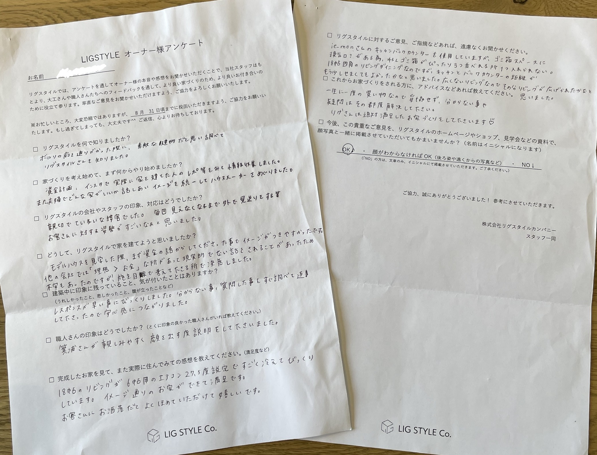 完成したお家を見て、また実際に住んでみての感想を教えてください