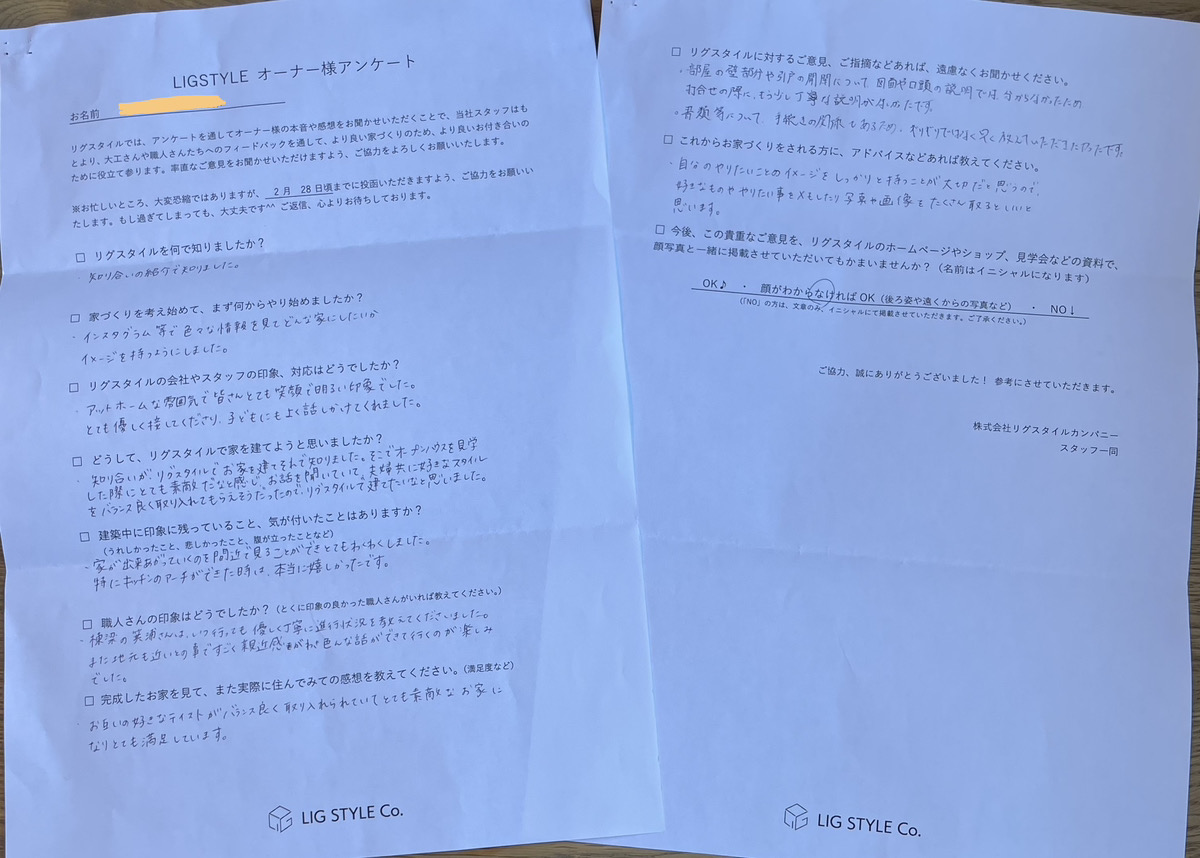 完成したお家を見て、また実際に住んでみての感想を教えてください