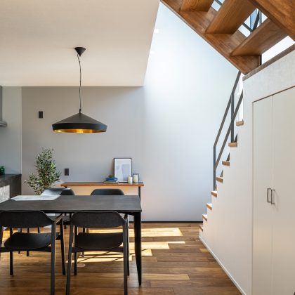 間取りに関しても、二階に風呂にした事で、リビングも広くとれて、動線も効率良く家事が進められて楽しく出来ています。採用したイテリアも家の雰囲気に馴染んでいて、皆満足しています。